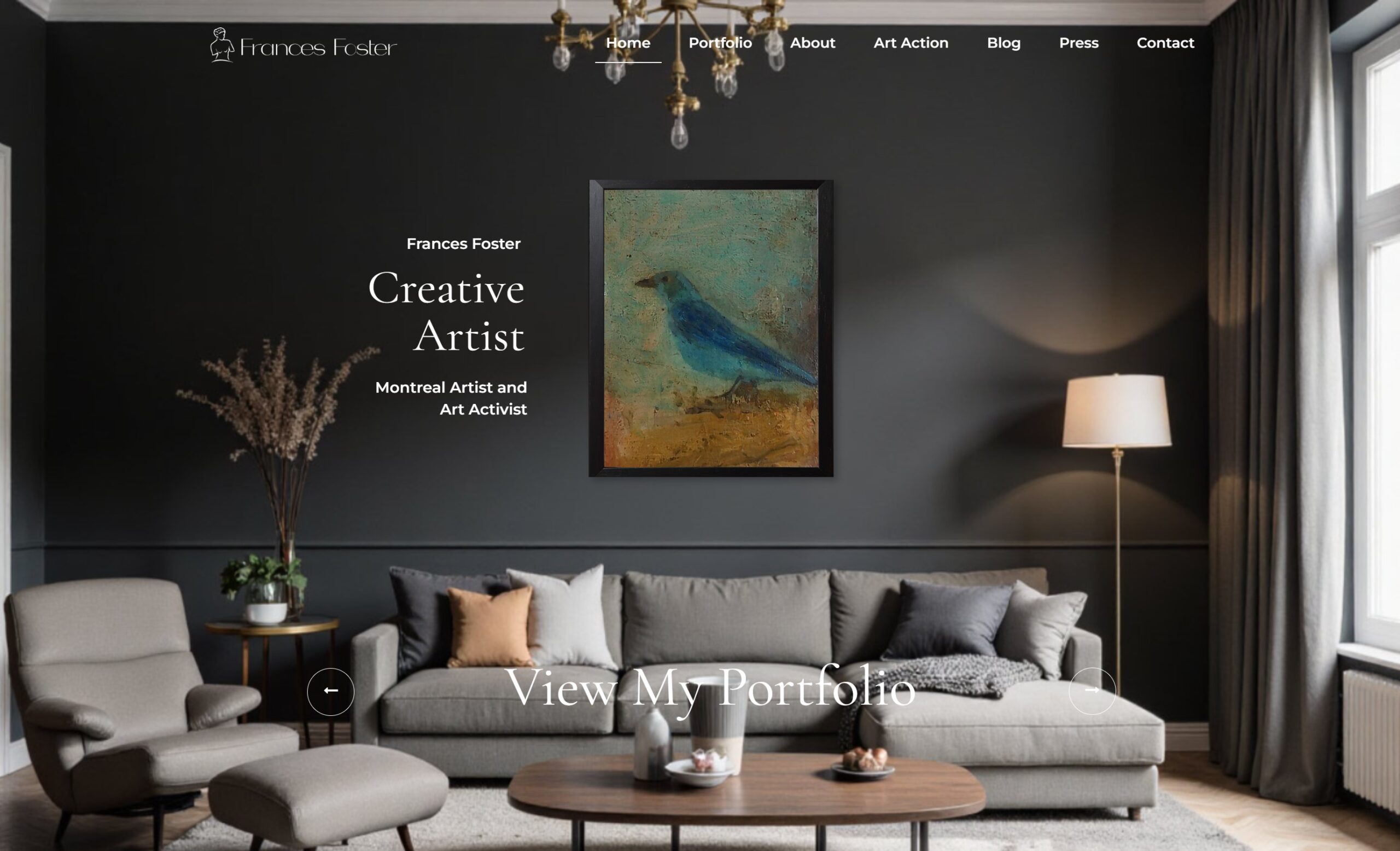 Welcomeโthis is the official home of Frances Foster, a Montreal artist and art activist whose practice blends visual storytelling with social awareness. Francesโ work has been recognized and collected, including placements in the Senvest Collection and the Colart Collection, and presented in a range of creative contextsโfrom gallery exhibitions to public-facing projects.